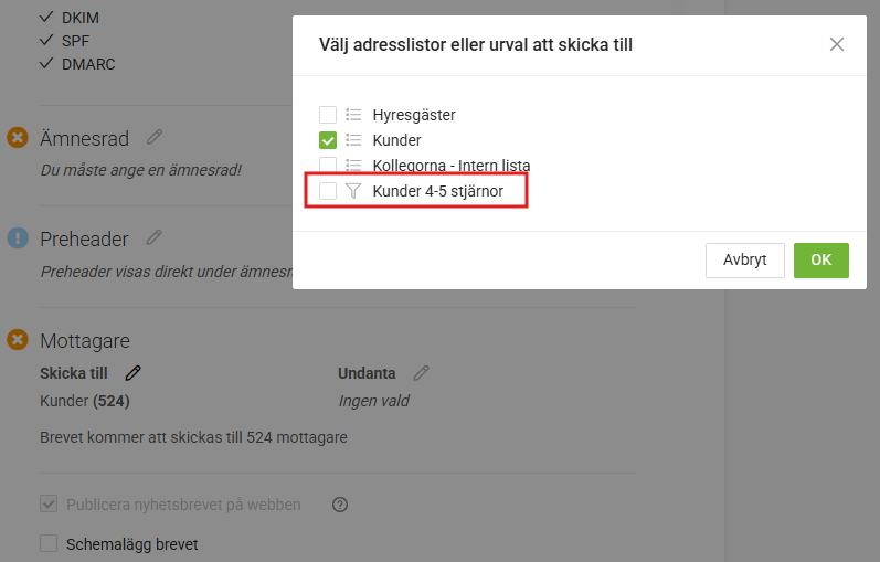 Med hjälp av Rating kan du också skapa urval och skicka riktade utskick till de mest engagerade mottagarna.
